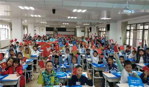 课程结束之后,工作人员为每位同学发了一本宪法小红本和一份纪念礼品,同学们拿到之后都十分开心。主办方也为法宣准备了一面锦旗以示感谢。