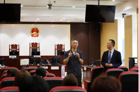 东莞市第一市区人民检察院检察委员会专职委员黄少华开展专题宣讲。黄专委紧密结合本次旁听的POP MART假冒侵权案件,详细讲解了检察机关在本案中承担的法律职能。同时结合本案量刑研判,深入解读刑法罪责刑相适应原则,向同学们清晰说明犯罪行为、主观恶性、危害后果与刑罚裁量之间的对应关系,让同学们精准理解我国刑事司法公正的底层逻辑。黄少华还围绕本案法律争议点、知识产权刑事司法实务等内容,与在场同学开展面对面互动交流座谈,耐心细致解答同学们提出的刑事侦查、审查起诉和审判监察程序、法律适用等各类疑问,为同学们答疑解惑、指点迷津。
